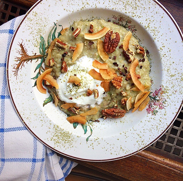 5. Top with coconut yogurt (or low fat Greek yogurt), toasted nuts, mint, coconut and optional other fruit.